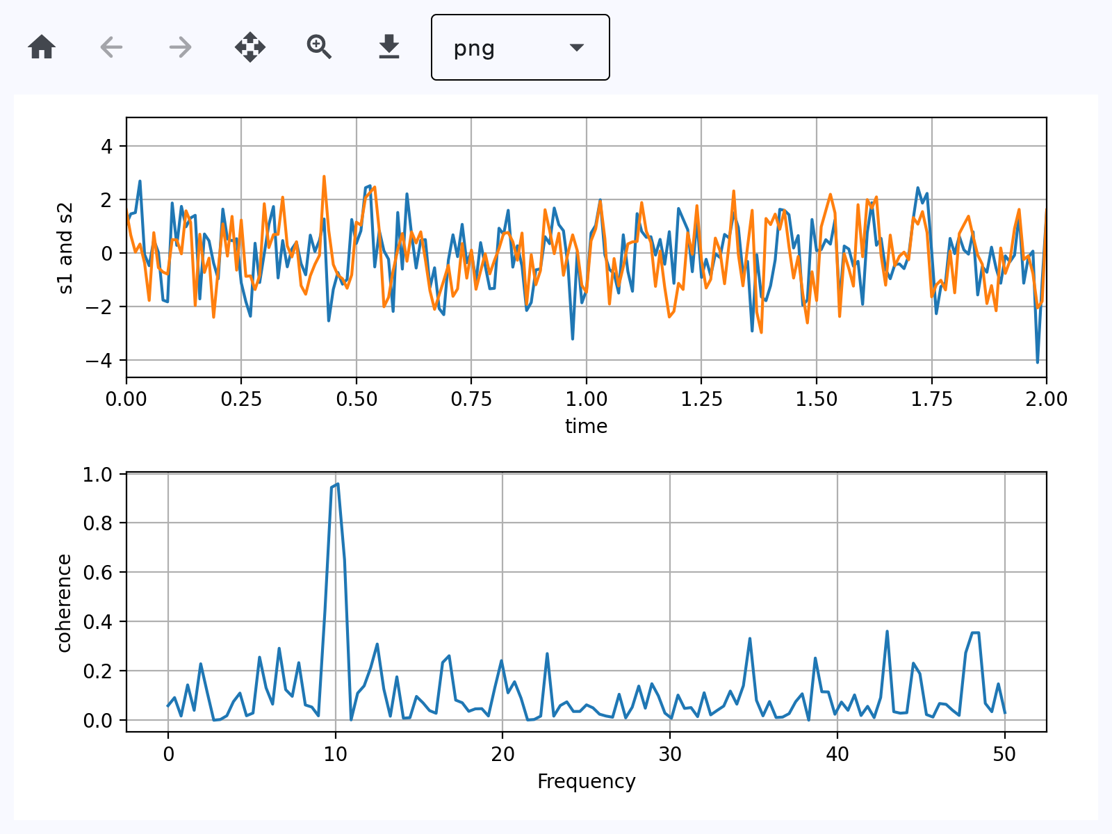 cxy, f = axs[1].cohere(s1, s2, 256, 1.0 / dt)